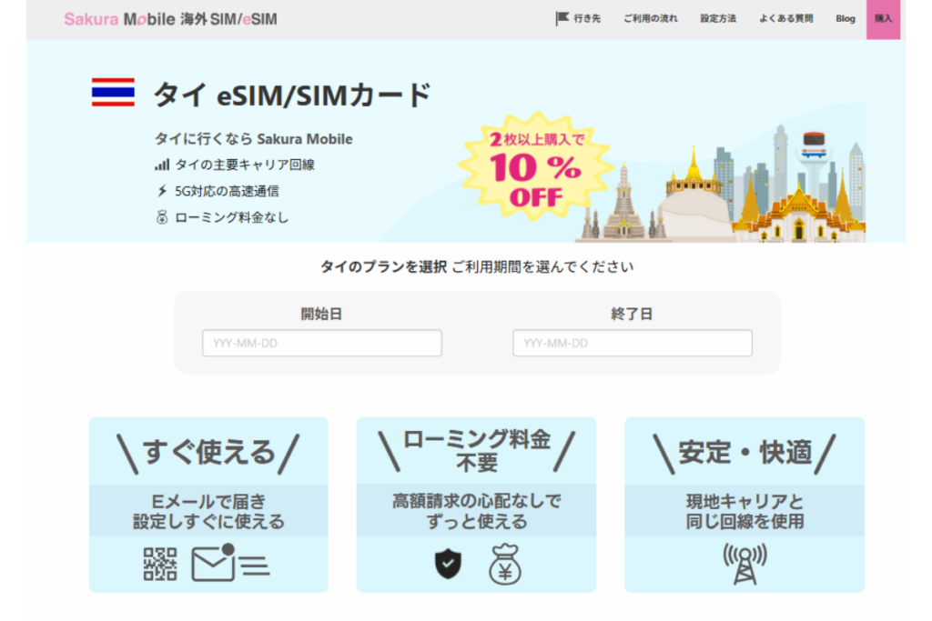 タイ旅行用に、SakuraMobileのタイ専用eSIMをぜひ検討してみてください。