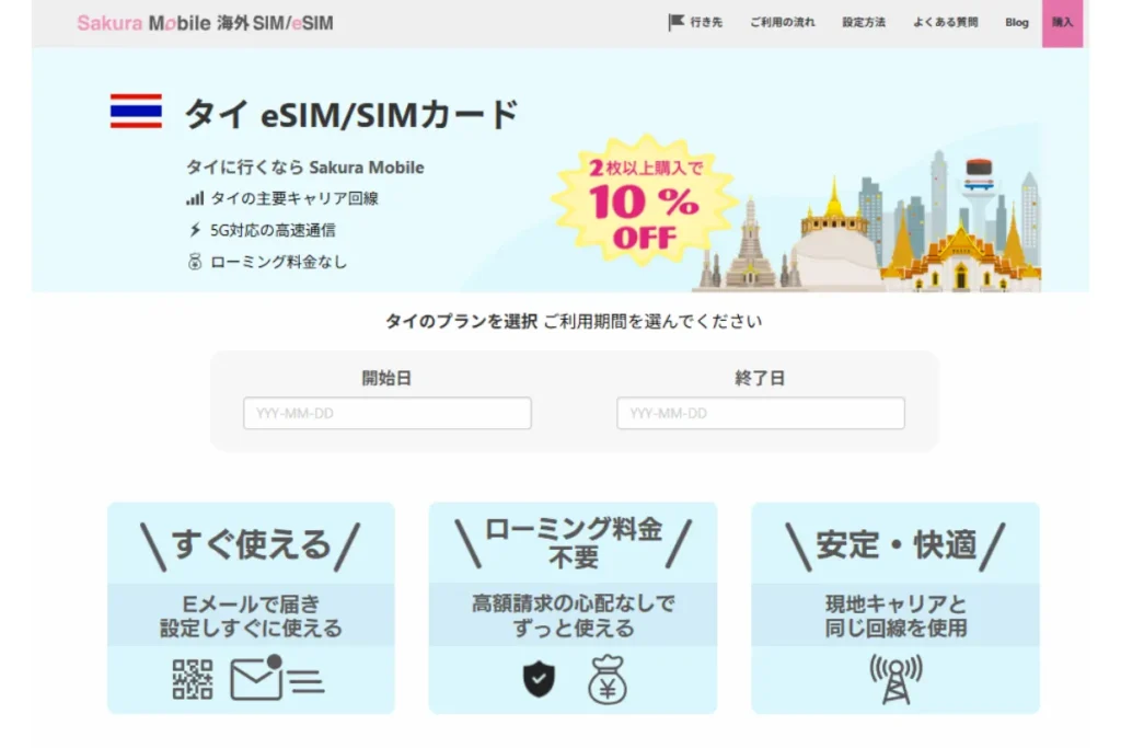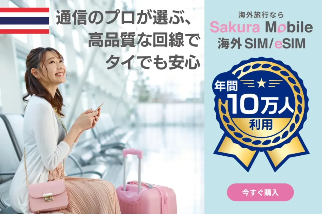 旅行用のeSIMには、コスパが抜群のさくらモバイルのタイeSIMがおすすめです。